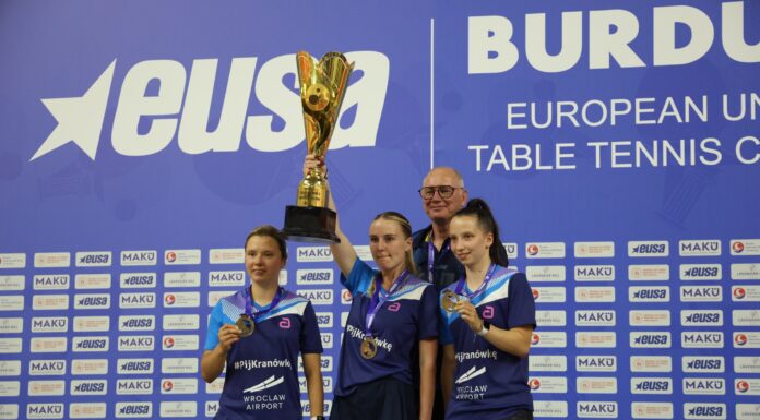 Znakomite zawody rozegrały reprezentantki Uniwersytetu Ekonomicznego we Wrocławiu - Anna Węgrzyn, Katarzyna Węgrzyn i Julia Furman podczas Akademickich Mistrzostw Europy w tenisie stołowym, które rozegrano w dniach 12-16.09.2025r. Dolnoślązaczki w tureckiej miejscowości Burdur najpierw wywalczyły złoty medal w turnieju drużynowym, a następnie siostry Węgrzyn...